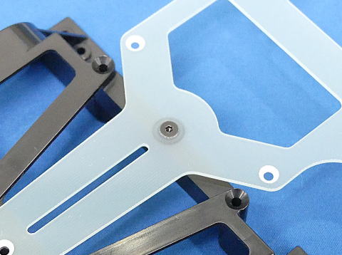 マシンの剛性が高まり、セッティングの違いが出やすくなります。パーツはシャーシに瞬間接着剤で貼り付けます