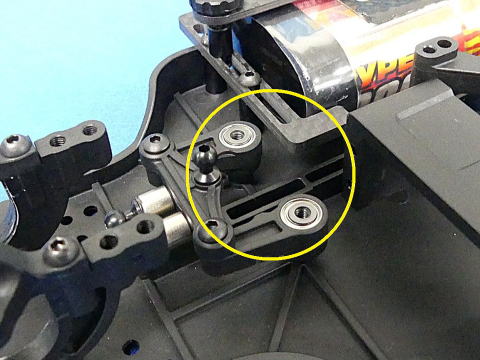 速さに結びつけるパーツです。角度だけでは無く高さも微調整してダンパーピストンの位置を